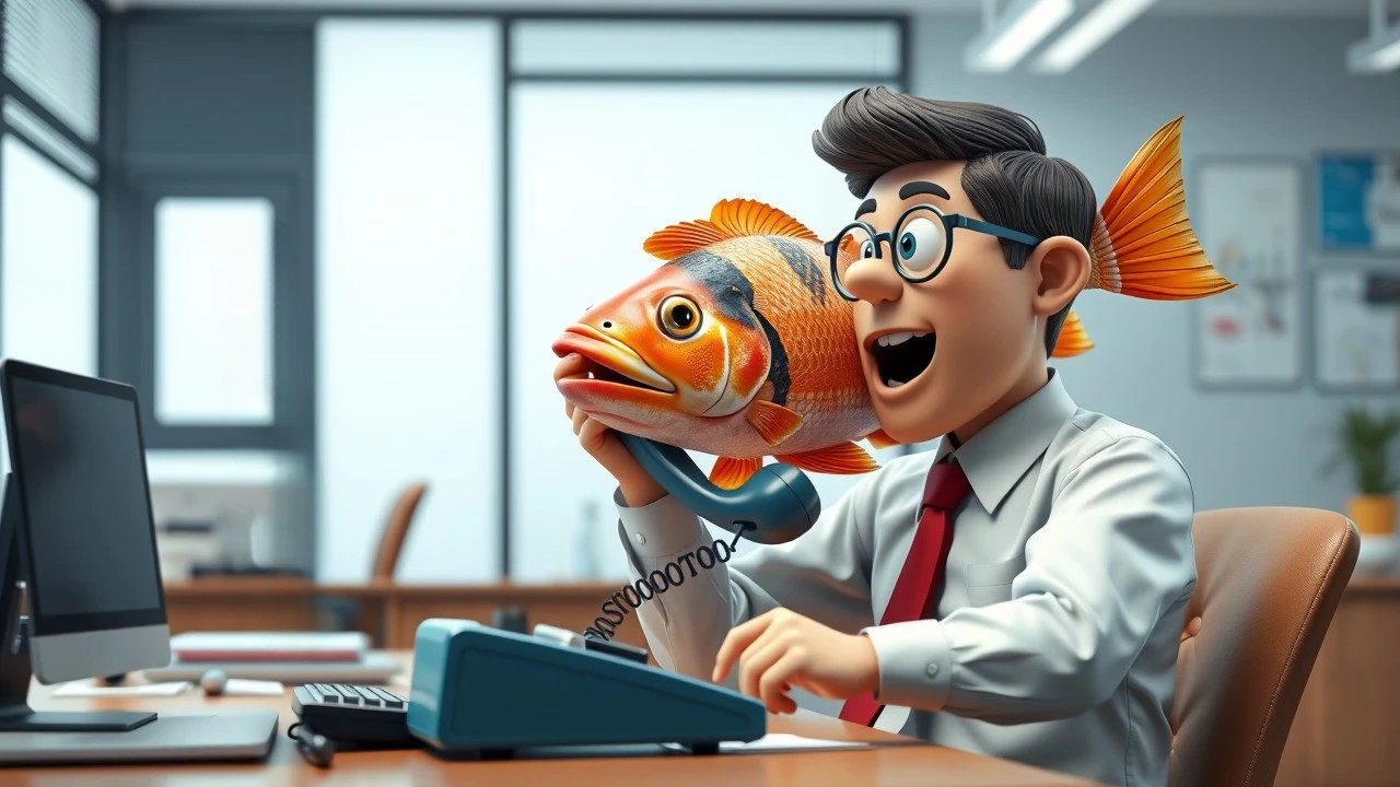 phish phone user April 11, 2025Full resolution (1280 × 720) ← Previous Next → Answering phish calls in an office, computer security risks.